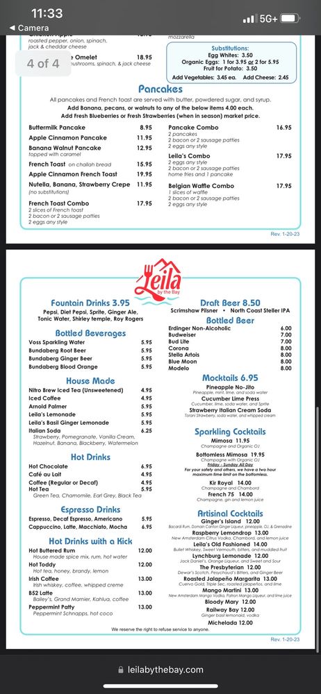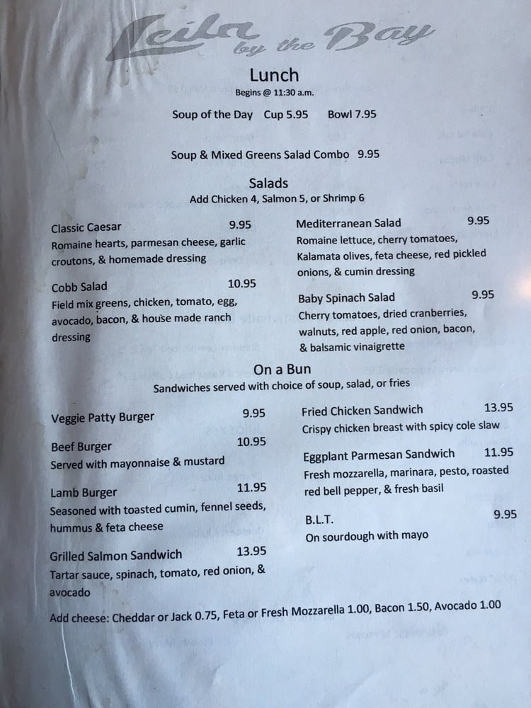 "Leila by the Bay is a charming restaurant with a coastal view, perfect for intimate gatherings. The menu offers a variety of options, including delicious breakfast, brunch, lunch, and dinner items. Customers rave about the massive and tasty food portions, attentive service, and beautiful outdoor ambiance. The restaurant also provides wheelchair accessibility and offers a full bar with a great selection of cocktails. Overall, Leila by the Bay seems like the ideal spot to enjoy a meal with loved ones while taking in the scenic bay views."